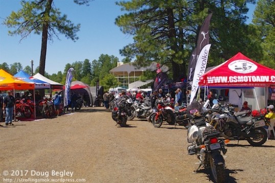 A special area of woods was reserved strictly for motorcyclists, who represent the hard core center of cross-country trail travel. Where are their bikes? They’re all packed into the vendor area aisles. Not a Harley cruiser or Honda Gold Wing to be found. They all use various flavors of dirt bikes, and load them with camping equipment. Good thing I’m not young anymore!
