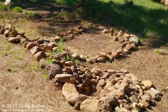 These are purported to be “experimental” check dams, an effort to slow down water flow in a wash, so that crops of squash, corn, cotton and beans have a fighting chance in the dry, short growing season here. Terraces and reservoirs were similarly used. I think the universal significance we attach to the nomadic Plains tribes is overplayed quite a bit for various purposes.