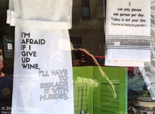 Someone has a sense of humor. This is the first shop I saw, and I would have liked to go in because I like “real cookware” in spite of the fact that I have no clue as to how to use any of it. Enjoy the two following photos, since the shop had a realty sign in the window and the shop’s website is dead and gone.