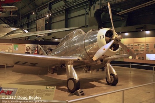 The 1937 Seversky P-35 is the forerunner of the P-47 Thunderbolt. It was America’s first all-metal single seat pursuit plane with retractable landing gear and fully-enclosed cockpit. The Japanese Navy ordered 20 of these in a two-seat version in 1938, making it the only American-built plane used operationally by a Japanese squadron during WWII.