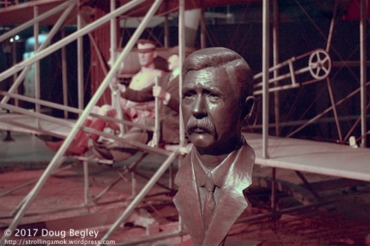 This bust of Charles Taylor honors the man who designed and built what is considered to be the first successful airplane engine, and he did it start to finish in just six weeks. He had begun in the Wright’s bicycle business in 1898, and was chief mechanic in the first transcontinental flight in 1911 by Cal Rogers. He lived until 1956, and must have appreciated witnessing the profound changes in aircraft performance.