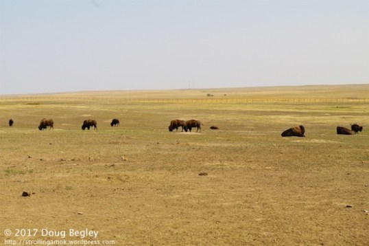 Ranches on the way north to Wall had herds of Angus cattle behind fences, which reminded me of something I’d read claiming that bison do better than cattle when winter comes, and don’t need feeding or drugs to do well. They’re just out there.