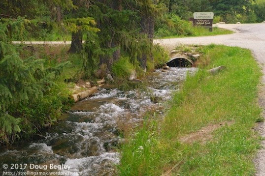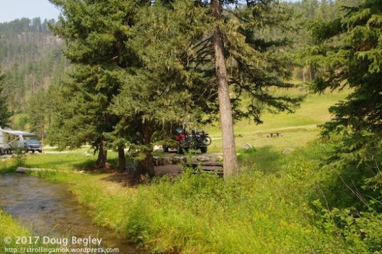 Then there’s my timing. The camp host here went to Spearfish yesterday and told me that he was glad to escape the smoke. Smoke? Yep, there’s a forest fire somewhere, and both Spearfish and Rapid City are blanketed. It hasn’t come here at all.