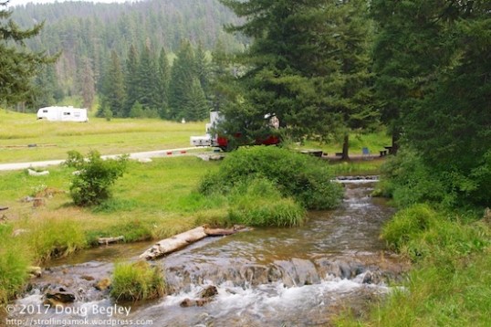 Can life be hard? It most surely can. But this is certainly not one of those times. Open only from Memorial Day through one week after Labor Day (for RVs, anyway), Hanna Campground is run by a concessionaire for the Forest Service. Normally $18/night to stay plus $2 for each yapping mutt on board, an America the Beautiful Pass chops this rate down to a base of $9/night. I can hack that for a week. A very tenuous cellular signal is the only reason I can think of why Hanna Campground is cheaper than the others in the general area. It’s very highly rated, and there’s a reason for that. I’ll let you figure that out from the photos.