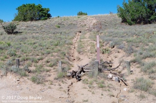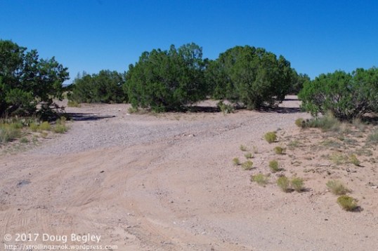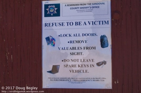 Bernalillo is right along I-25 and is packed with franchise restaurants, so it being some seven hours past breakfast, I thought I’d stop at a cafe in historic Placitas, a town in the center of an original Spanish land grant. Turns out, in spite of the Chamber of Commerce listing businesses one after another, most are actually back in Bernalillo, 6 miles west. Thanks. Vicarious businessing. It became easier to just set up camp and eat something at Rancho Begley. The main drag through Placitas shows absolutely nothing but quiet residential side streets. Once home to hippies and other “turn on, drop out” individuals, it’s now home to high-upscale folks seeking a less urban approach to employment in Albuquerque. What a shift! There are still reputed to be a few descendants of the original San Jose de las Huertas land grant in Placitas, reminding me of a similar situation in Wickenburg, Arizona. Not sure about the hippies, but since none of the residential spaces in Placitas looked like abandoned junkyards, I suspect they’ve moved to the area a few miles south of the technically impressive Earthship Community near Taos. (Don’t assume that the Earthship Community itself must be populated by hippies. “Alternative lifestyle” does not infer a choice of just one approach or one set of values. You can reference this article to help gauge who and what’s there.)