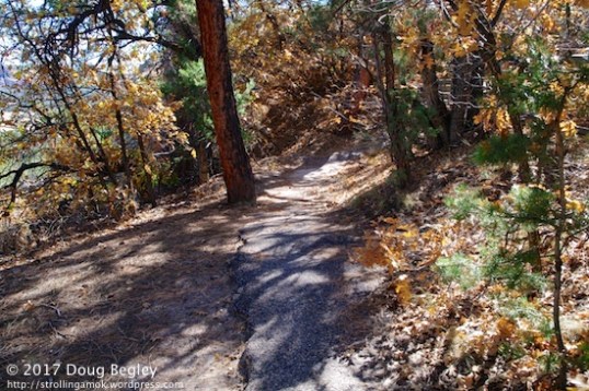 The lower end of the trail starts out paved, though it may be difficult to see here.