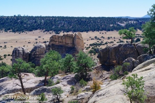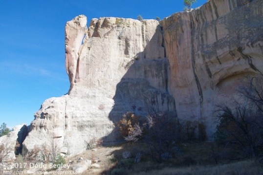 Yup, I’ve been well out of range of any cellular signals for the last week, blowing that time at a campground that can be found while heading for the Visitor’s Center at El Morro. It’s all paved roads and vault toilets here, so considering those and the provided trash bins, staying here is not exactly roughing it. The GPS coordinates for the camp are 35.036999, -108.335999. Elevation is 7,200’, providing daytime highs in the 60s in Late October. Maximum posted rig length is 27’, and this is a very pleasant camp that seems to be used mainly for overnights only.