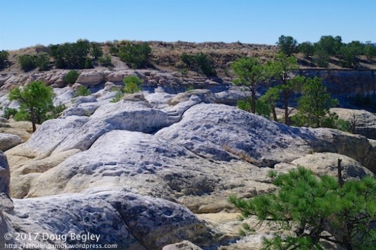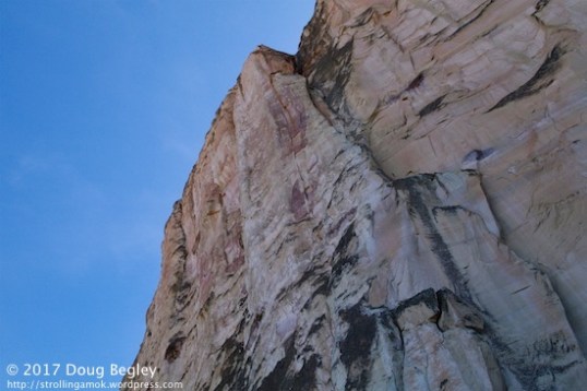 If it weren’t for the trail being scratched into the rock with two lines about 2-1/2 feet apart, negotiating it could be quite a trial. Time for the walking stick that I didn’t bring.