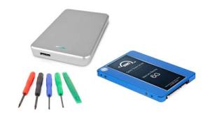 OWC (Other World Computing) offers this kit, and you select the drive type and capacity. I put the 500GB SSD into my laptop and stuck the old 256GB SSD into this enclosure for miscellaneous uses. Because I don’t keep videos or photos on the internal drive, it doesn’t need to be real spacious.