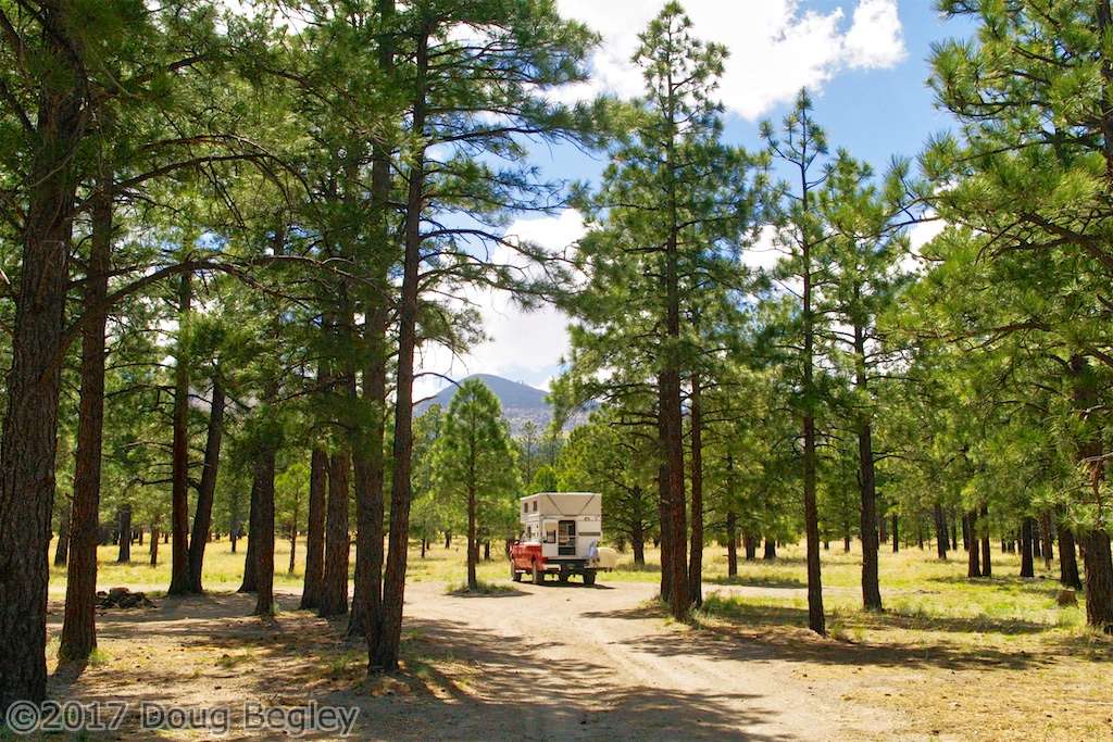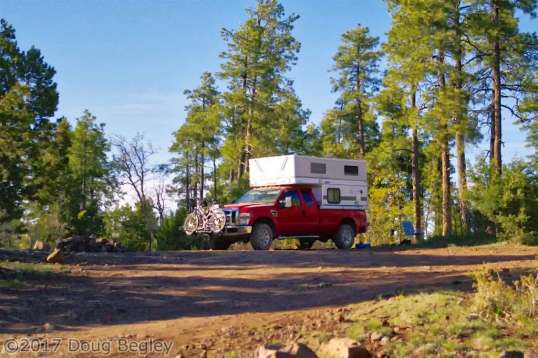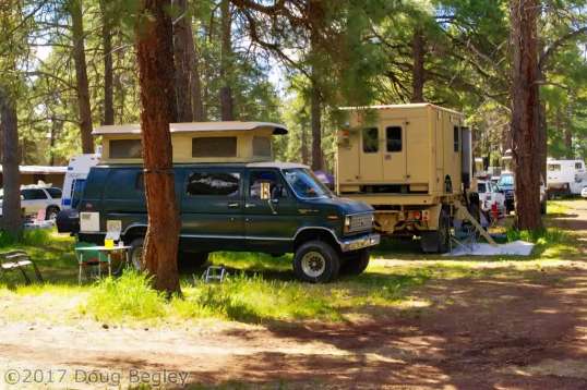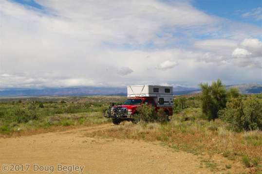 I thought I would present here a kind of photo summary of many of the places I visited this year. Not all are represented, especially this section on the commute toward Illinois, when truck stops and rest stops were the norm in order to minimize travel time. This year’s trip eastward was unusual in that I first stalled for time waiting for the Overland Expo West in Flagstaff. Apart from locations, no explanations are provided in the photos – I don’t want to rehash what I’ve already written. You may be able to get an explanation by entering the location in this site’s search box at the upper right, but the purpose of this photo presentation is sometimes “pretty pictures”, sometimes a simple reveal of what campsites were like, and now and then, memorable moments.