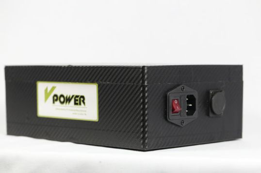 This is the smallest 48V battery, a 10Ah that matches Evelo’s original. They add an on/off swith to the harness plug and shielded recharging port.