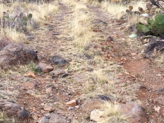 A few yards later, there’s a couple of inbedded rocks on the left. Note to self: put the tire right over the smaller rock. Trying to go between them with a tire is a bad idea that would invite sidewall damage.