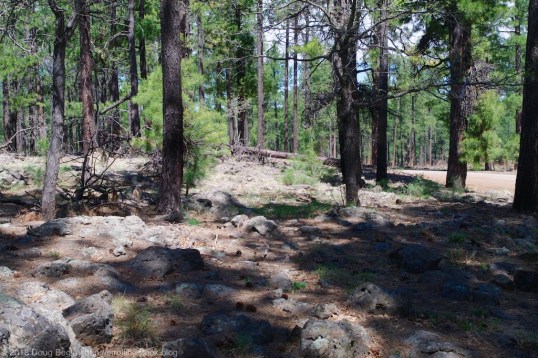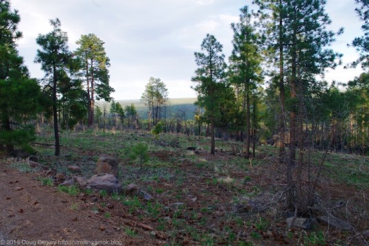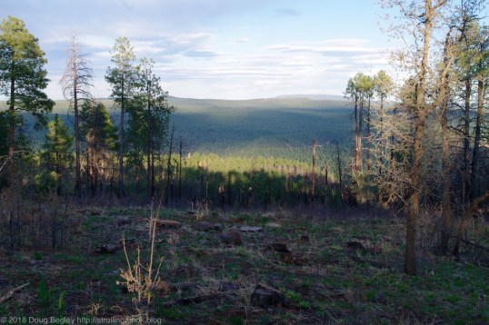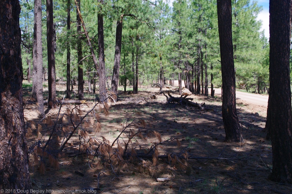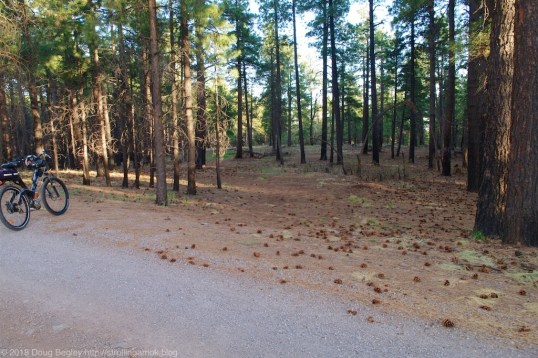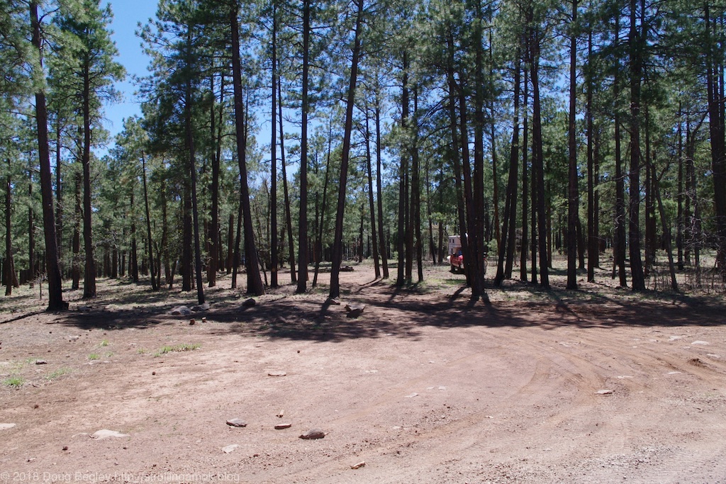Some signed trails up here are not shown on the MVUM any more, which means that they are no longer approved for motor travel of any kind. I briefly tried an approved one called 535A, but it was more deeply rutted than 9018H, and the potential rewards for continuing along it felt slim. I had already passed by adequate solitude. Some exploration with the e-bike may be in order, but only if it proves practical to do along such trails. You tend to find out pretty quickly. Also, wind leading to nippy temperatures is forecast for the next three days, and I’ll be curious to find out how much gets through at ground level, though I’ll be doing errands in Flagstaff during the worst of it.