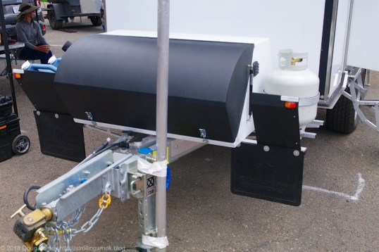 The Eco’s propane storage is tidy and easy to clean off, and mudflaps let you know that this rig is not designed with the Interstate and RV park aisles in mind. Note the 360-degree rotating hitch, which allows far more side-tilt than the usual ball hitch.