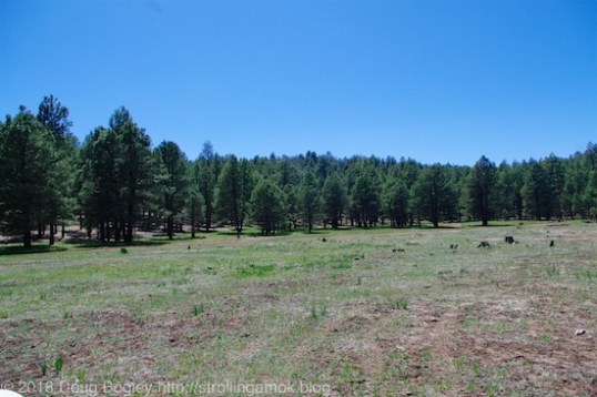 Pulling into NF-535 well south of Flagstaff did not look promising as far as finding a full-sun campsite goes. Heck, finding any campsite still available looked impossible. Every niche in the woods and every open-air site was packed with rigs or groups of rigs, as well as all the tents and canopies you could hope to see in a lifetime. That’s Memorial Day weekend, I figure. Still, I pressed onward and upward, literally.
