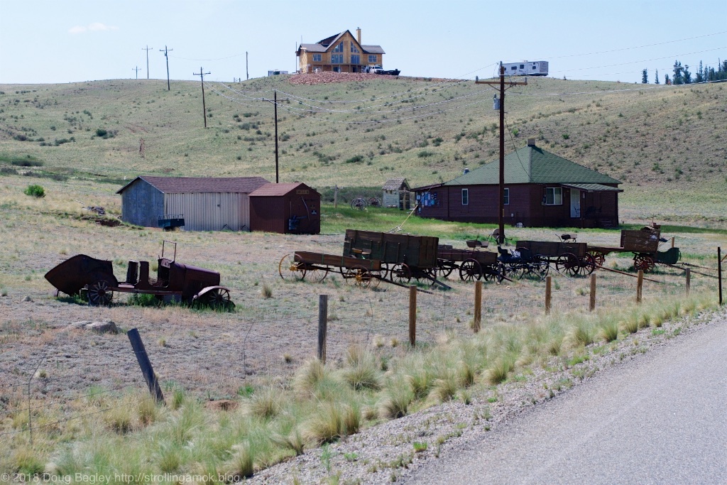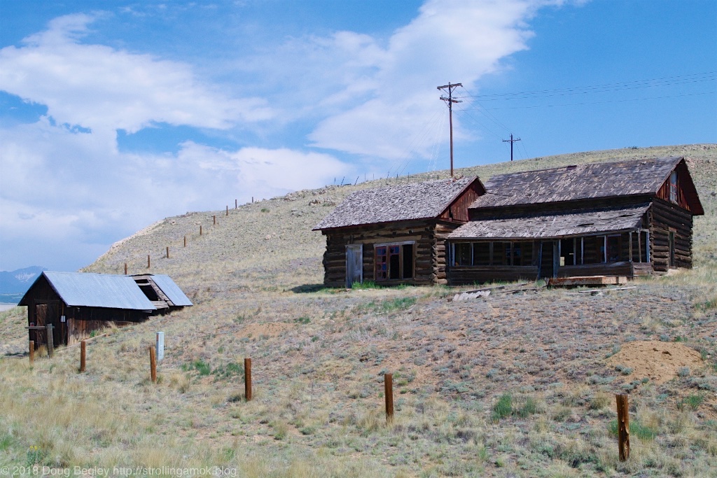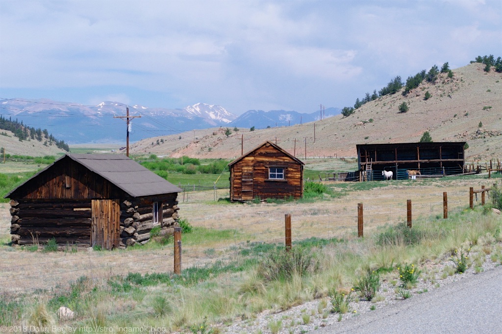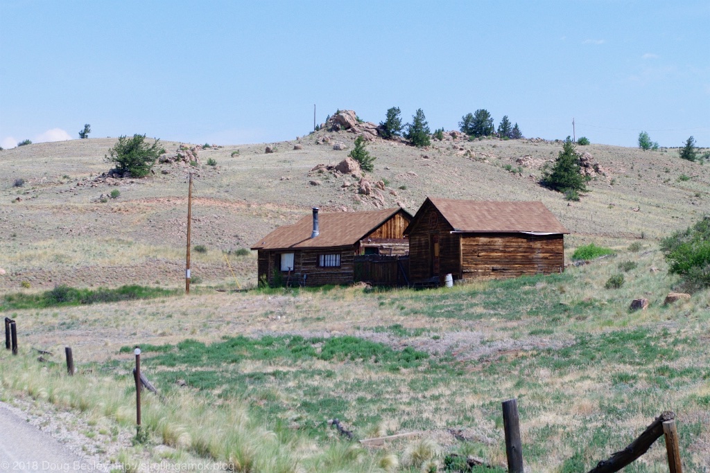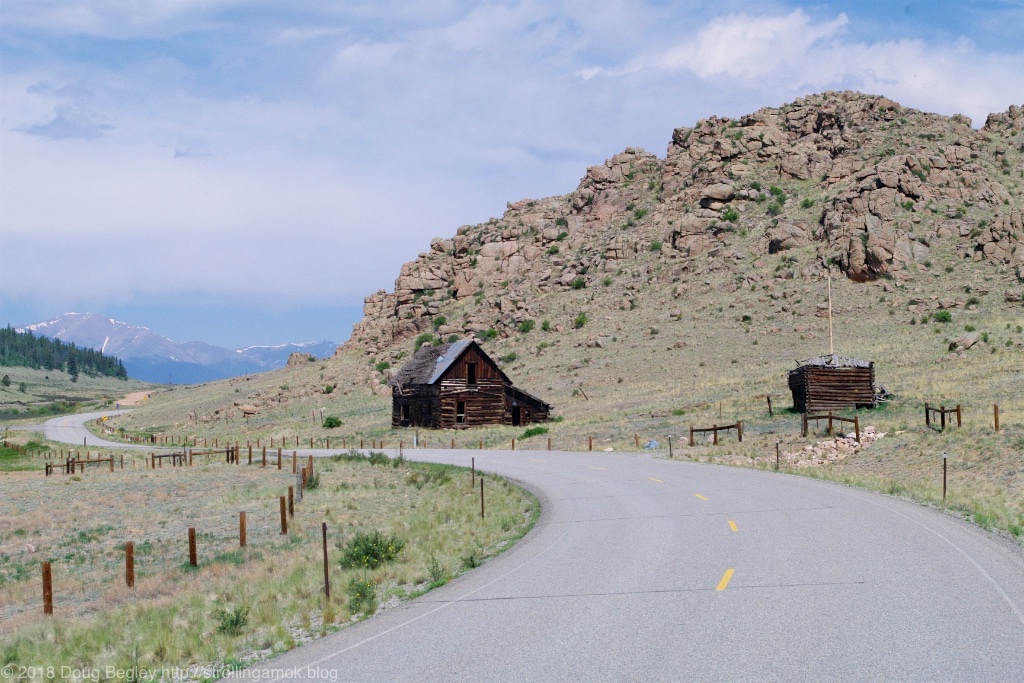 I took some photos of abandoned cabins and occupied homes on the way there from Pike National Forest along County 77, and both that and US 285 are a sight to behold. All the abondoned buildings are plastered with no trespassing signs, and nothing was for sale. I limited myself to cabins, but the broad valleys and broad-based mountains beyond made me glad I decided to venture away from Dillon and the Interstate.