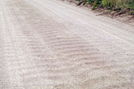 This is hardpack, and with a stiffly-suspended vehicle, it’s time to rock and roll. A normal car/truck can skate over this at 30 MPH or so, but the result of doing that with the F-250 and trailer is not so good, at least at tire pressures that will handle the weight. A few miles of this at 1/2 MPH makes the paved fee campsite pretty appealing.